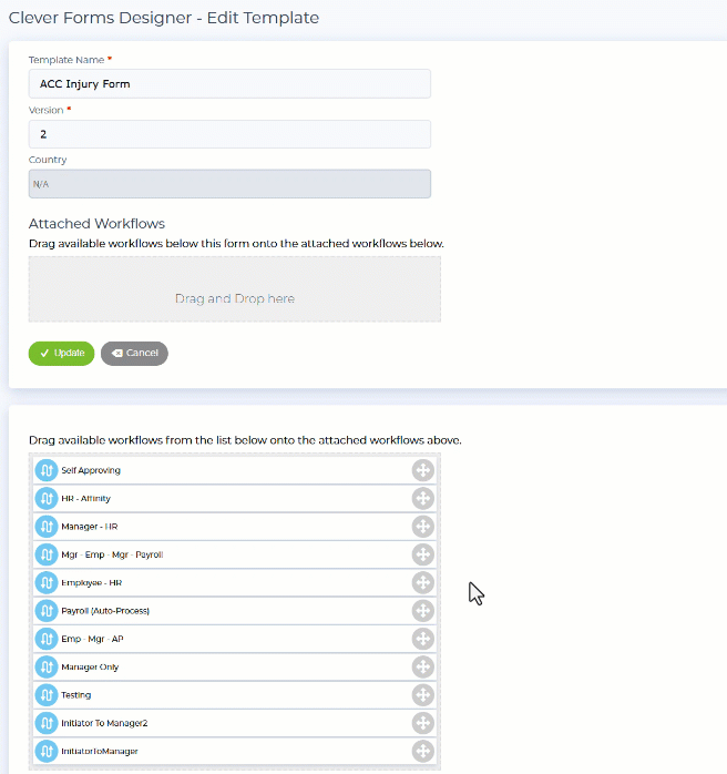 Clever Forms gives HR and payroll teams a visual, drag-and-drop designer. Add fields, set validation rules, define approval chains, and publish – all without writing a line of code.